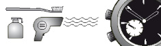時計の表面は、石けん水を浸した歯ブラシを使って汚れを落とし、柔らかい布で拭き取って乾かしてください。時計の防水性能をご確認の上、時計本体に水がかからないように十分ご注意願います。