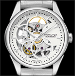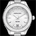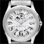 1950年に誕生して以来、ハリウッド映画にも度々登場しているハミルトンのアイコンウォッチ。マザー・オブ・パールのダイヤルやエレガントなホワイトカラーのストラップなど、エッヂの効いたスタイルの中に女性らしさを感じさせるアレンジが魅力。