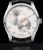 レギュレーターウォッチ(ダイヤル上に時、分、秒が別々に表示されている時計)のルーツは、時計製造の過程で時刻調整や製品の精度確認のために使用された特殊時計に由来すると言われています。ジャズマスター レギュレーターは、最新のテクノロジーを誇るスイスETA社と共同開発したハミルトンのエクスクルーシブ(専用)ムーブメントH-12を搭載。ハミルトンの豊かな創造力とETA社の技術力の融合で、針をアシンメトリーに配置した斬新なムーブメントが実現しました。