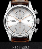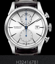 ムーブメントは、スイスETA社と共同開発したハミルトンのエクスクルーシブ(専用)自動巻きクロノグラフムーブメントH-21。定評のあるヴァルジュー7753をベースに開発され、精度と安定性がさらに向上、パワーリザーブは最大60時間に延長しています。ブリッジには、ブランドの頭文字“H”を象った美しい装飾が施され、シースルーの裏蓋からその美しい動きを楽しむことができます。
