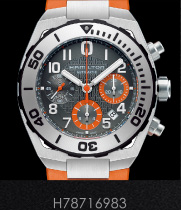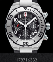 軍用時計の長い歴史を誇るハミルトンは、最新の素材と製造技術によって常に最高のパフォーマンスを追求しています。30気圧という高い防水性、ねじ込み式リューズ、反射防止加工を施した風防、暗い海中でも高い視認性を誇るスーパールミノバのインデックス、ダイビングボトルのバルブをモチーフにしたダイナミックで操作性に優れたプッシャー。そして、ベゼルのインデックスには、グリップ性に優れたラバー製の立体的なインデックスを採用しています。また、クロノグラフタイプのモデルには、パワーリザーブ最大60時間を誇るハミルトンのエクスクルーシブ(専用)ムーブメントH-31を搭載しています。
