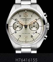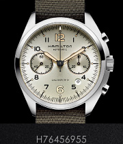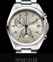 カーキ パイロット パイオニア オート クロノは、自動巻きクロノグラフの新ムーブメントH-31を搭載しています。スイスETA社と共同開発したこのムーブメントは、ハミルトンのエクスクルーシブ(専用)で、パワーリザーブ最大60時間を実現。定評のあるヴァルジュー7753をベースに開発され、精度と安定性がさらに向上しています。ブリッジには、ハミルトンの頭文字“H”を象った模様が刻まれ、シースルーの裏蓋からは、その美しい装飾とムーブメントの精巧な動きを楽しむことができます。