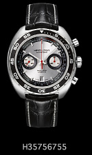 機械式自動巻:ETA H31/SSケース(ケース径45mm)/サファイアクリスタル(反射防止加工)/10気圧防水/クロノグラフ機能/タキメーター機能 ● H35756755 (シルバーダイヤル・ブラックカーフストラップ) ● H35756735 (ブラックダイヤル・ブラックカーフストラップ) 予価:170,100円(税抜:162,000円) ※2012年5月発売予定